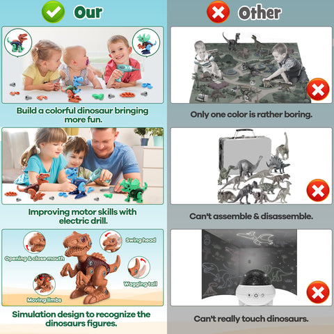 - ✅【Educational STEM Learning Toy】Simulation design and clear textures of dinosaur toys, enable kids to recognize and explore the world of dinosaurs. Each part is assembled by the children themselves, which can develop their hand-eye coordination and stimulate the imagination of dinosaurs. Let your children fall in love with assembly and dinosaurs!!!