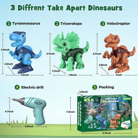 - ✅【High-Quality Dinosaur Toys】Made of high-quality, non-toxic and recyclable ABS plastic. The edges and corners have been specially treated, so you don't need to worry that the parts will scratch their hands during the assembly. Laradola kids toys for kids are sturdy and durable, even if dropped from a high place, they will not break easily. It is the best choice for assembling toys.