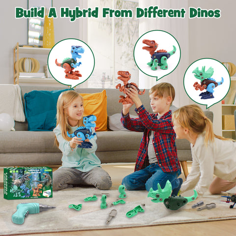 - ✅【Newest Take Apart Dinosaur Toys】Our building toys include 3 kinds of dinosaur: blue Tyrannosaurus Rex, green Triceratops, brown Velociraptor. Kids can open this dinosaur Kit box and start playing immediately. The multi-color design helps attract children's attention to creative assembly and promotes children's teamwork.